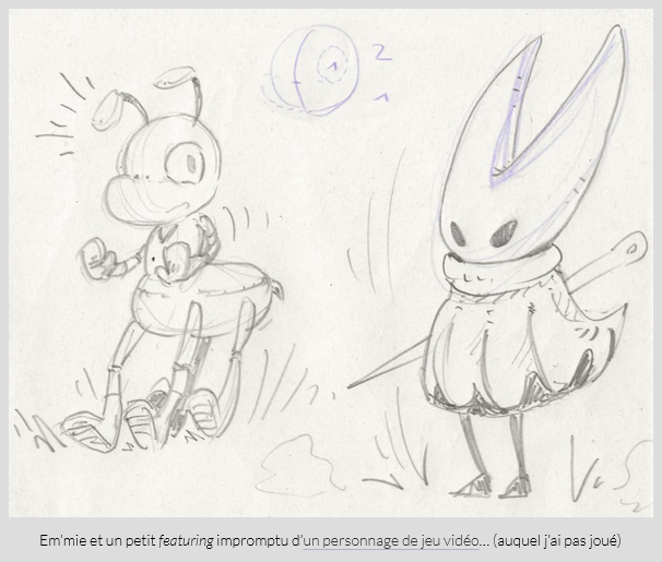 Plutôt que de vous poster 40 pages de gribouillis scannés, je vous ai enregistré une vidéo commentée de mes feuilles de croquis avec des remarques. J’espère que c’est un minimum intéressant et pas trop long (environ 30 minutes), je vois ça comme un format un peu exceptionnel, compte tenu de ma production atypique du mois.