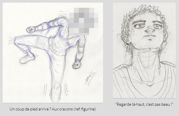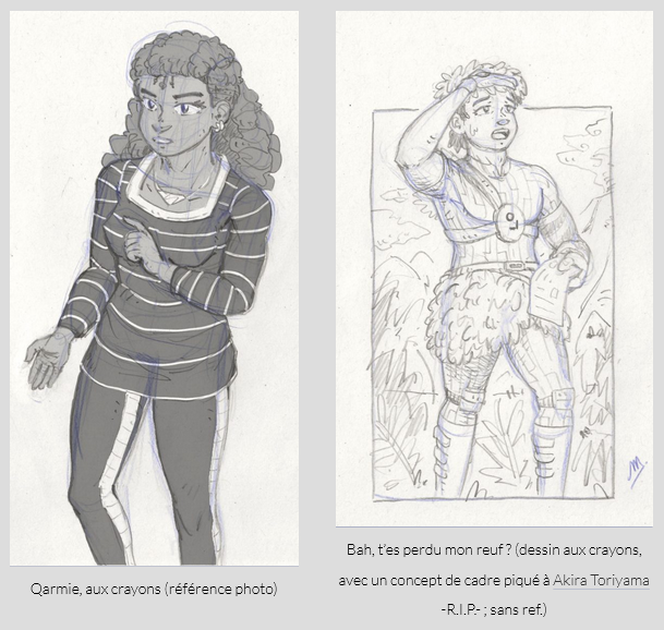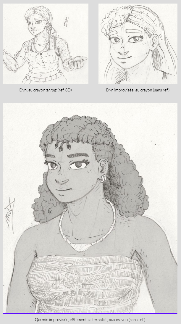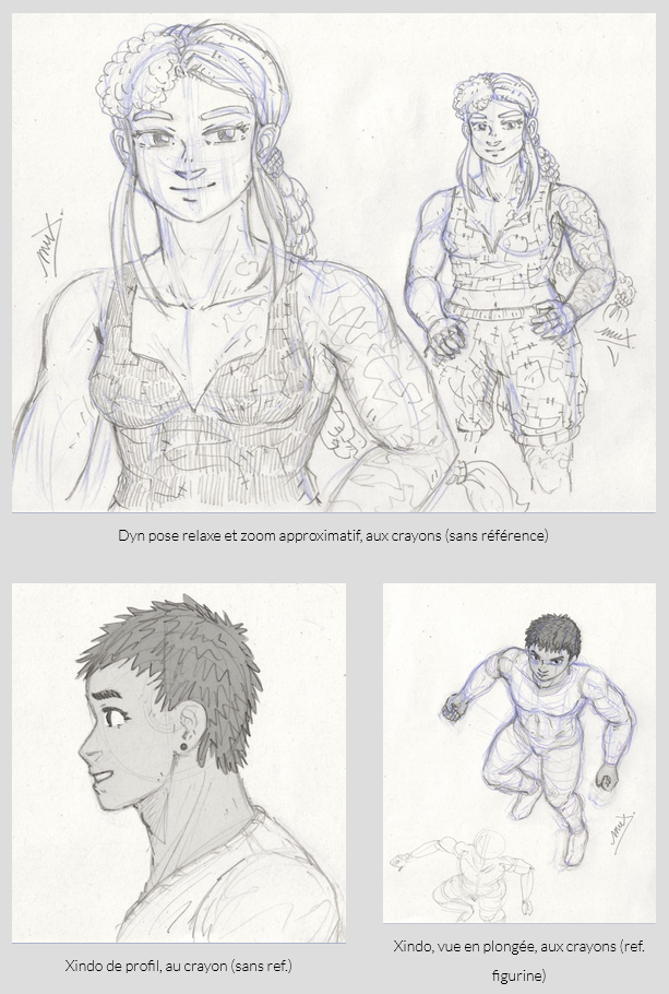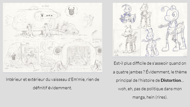 Mis à part les dessins qui développent l’histoire ou l’univers de Distortion, j’ai surtout gribouillé ponctuellement avec ce qui m’inspirait ou me donnait envie sur le moment, avec diverses références ou bien rien du tout, c’est donc assez décousu dans l’ensemble, oscillant entre le bon et le un peu naze !