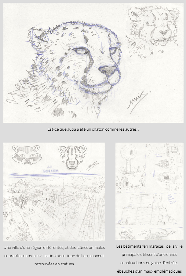 Début février, j’ai été pas mal inspiré en poursuivant le développement en détails du background de Juba, et imaginé un peu plus l’architecture de la ville principale du récit, en faisant une sorte de lien historique avec des bâtiments anciens modernisés, dans un urbanisme moderne assez respectueux de l’Histoire et de la nature, mais aussi d’une autre ville situé dans une région différente du monde, là aussi “entre tradition et modernité” (pardon).