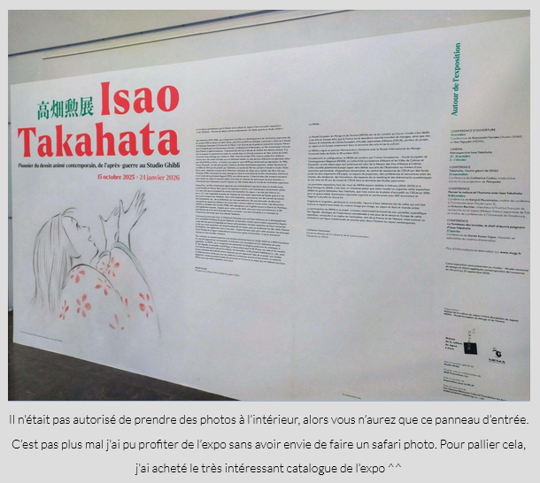 Toujours dans la même sphère, Bif a réussi à me sortir de ma tanière pour visiter l’exposition sur Isao Takahata à la MCJP, suivi de la projection de Omohide Poroporo (Souvenirs goutte à goutte) dans leur très belle salle, que je n’avais jamais vu et qui est aussi superbe que touchant. Par rapport à l’excellente expo de 2014 exclusivement sur les layouts du studio Ghibli c’était ici bien plus varié, avec un cheminement chronologique mettant en valeur chaque étape de la plupart des œuvres du réalisateur (séries et films), de simples documents de travail (parfois accompagnés d’une traduction) jusqu’aux éléments ayant servi en bout de chaîne (cellulos, décors). Vraiment impressionnant de voir la qualité et la finesse, de si près, des originaux, et les nombreux textes ou documents vidéo qui les accompagnent complétaient parfaitement le tableau ; j’ai appris pas mal de choses mine de rien. Peut-être un indice sur ma motivation particulière de février, haha.