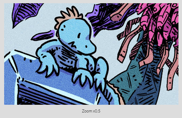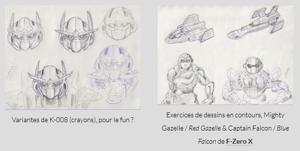 Je note une tendance à aller vers plus de “réalisme” en général que le style manga utilisé au feeling à la base (parce que j’aimais bien dessiner comme ça), je n’en suis pas encore à trouver le bon équilibre, cela explique en partie pourquoi je ne suis pas très motivé pour avancer sur les illustrations des persos de type humain, étant un peu trop en phase technico-stylistique intermédiaire, avec la risque de vouloir tout reprendre dans quelques mois, haha.