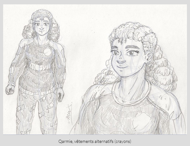 Le destin de Juba étant lié à celui de Yammah, j’ai aussi étendu des aspects de l’histoire de ce personnage et eu de nouvelles petites idées pour détailler ses origines ! Que je dessinerai peut-être que dans dix ans, mais c’est important pour moi de déjà savoir, haha.